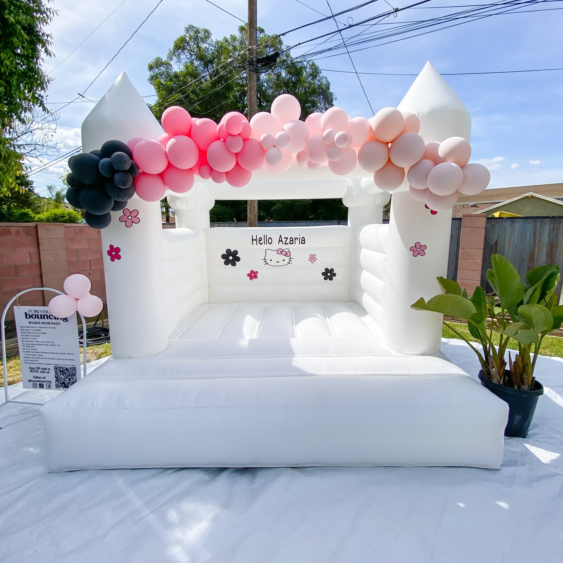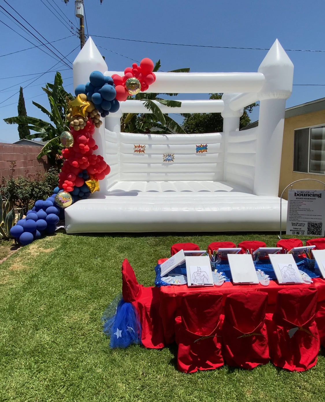The Chiqui Castle provides a luxurious atmosphere for your little prince or princess. This modern white bounce house is perfect for smaller backyards or indoor events. Its size is ideal for smaller spaces, making the Chiqui Castle the perfect way to add elegance and excitement to any occasion. Recommended for ages 3-10.